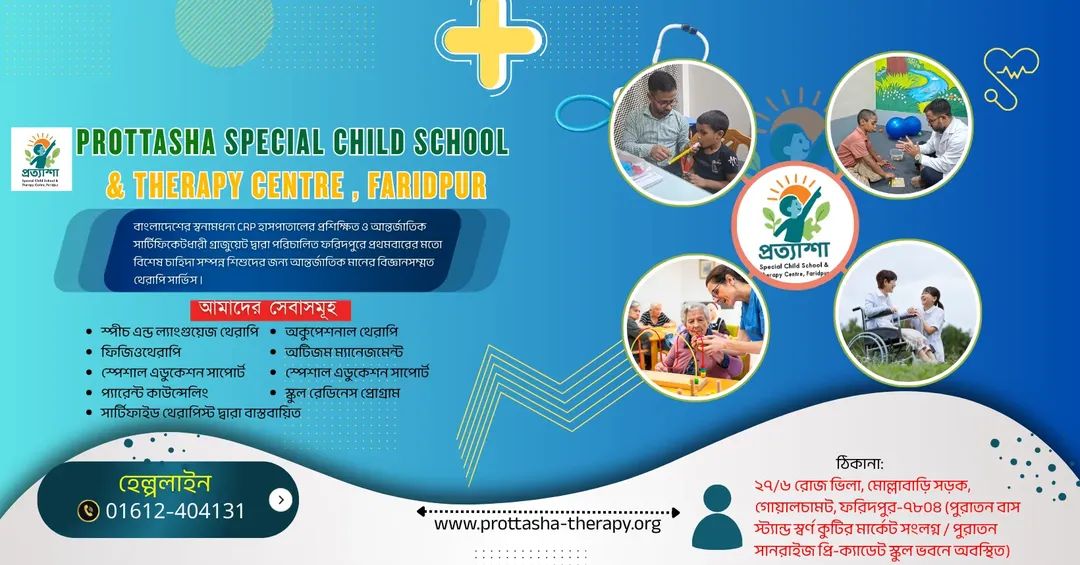 27/6 Rose Villa, Mollah Bari Road, Goalchamot (Old Sunrise Pre-Cadet School Building), Faridpur, and another Therapy Centre in Comilla, Bangladesh.